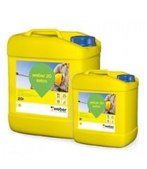 Weber 20 Extra ; Beton, şap, sıva vb inşaat harçlarının mukavemetini ve çalışma süresini iyileştiren su geçirimsizlik katkı maddesidir.