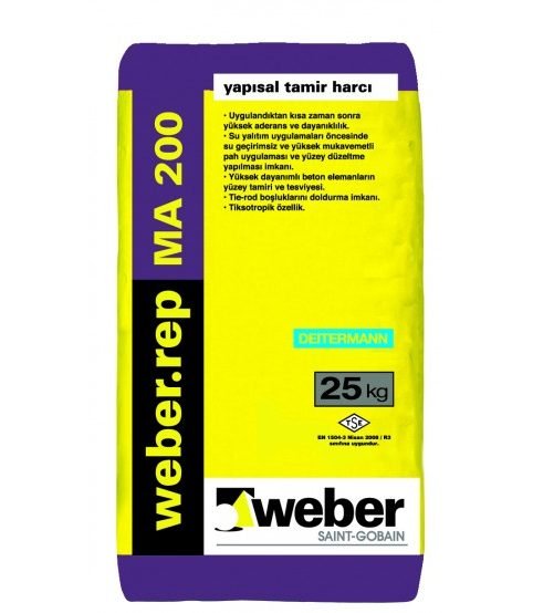 Weber.rep MA 200 Çimento esaslı, yüksek mukavemetli, polimer ve elyaf katkılı, su geçirimsiz yapısal tamir harcı.
