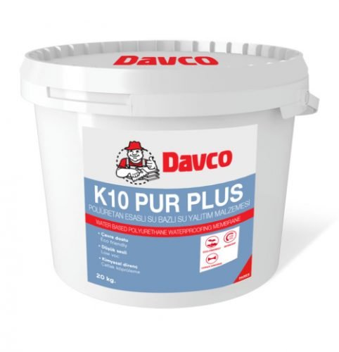 K10 PUR Plus, su bazlı poliüretan esaslı, yüzeyde su geçirimsiz elastik membran oluşturan tek bileşenli, hızlı kuruyan, mükemmel kimyasal dayanıma sahip, kullanıma hazır su yalıtım malzemesidir.